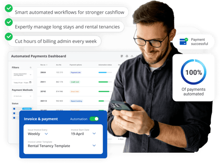 To take you from cash slow to cash flow, we're introducing Automated Invoicing & Payments for long‑stay and permanent guests. RMS generates invoices, sends them, and takes payment automatically while keeping everything reconciled in real-time. That’s centralized billing across accommodation, F&B, activities, and utilities without spreadsheets or workarounds.