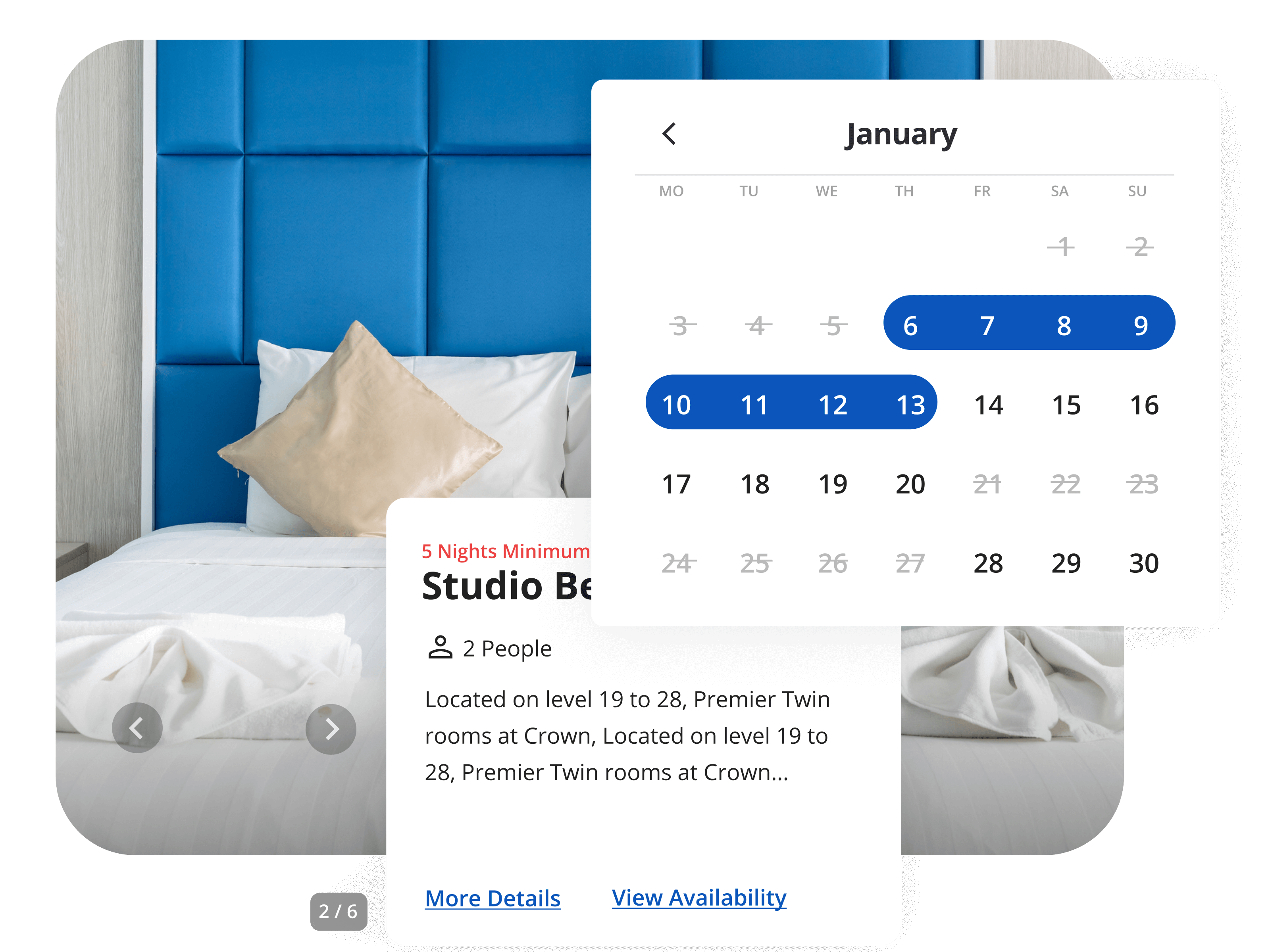 Unavailable dates are greyed out, and sold-out categories are marked, reducing clicks and confusion